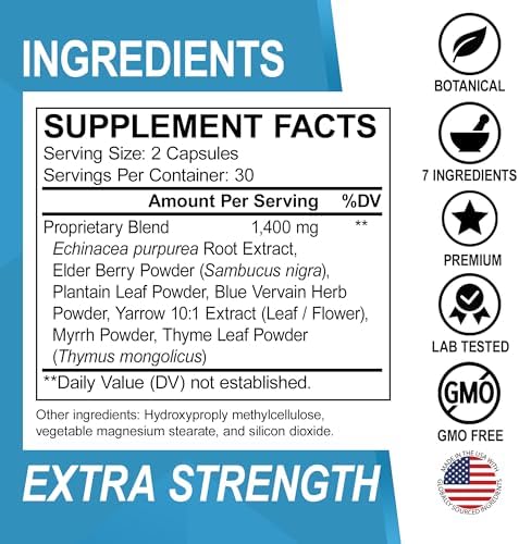 - 7 Powerful Herbs: Herbal lymphatic drainage supplements aid in lymphatic cleanse detox & lymph system support capsules with herbs echinacea, elderberry, plantain, blue vervain, yarrow, myrrh & thyme