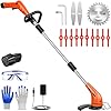 - ✅3-in-1 Multifunctional Blades: Circular saw blade for pruning thicker shrubs and branches. Metal blades for cutting thick weeds and small shrubs. Plastic blades for mowing soft grass. Cordless weed trimmer is perfect weeding tool for yard, garden, walkways and patios.