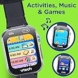 - Strike a pose! This smartwatch features two cameras, a high-resolution screen, a splash-proof metal body and a fashionable watchband that makes this full-function smartwatch the coolest tech around. Get creative with the dual cameras to personalize your clock face, photos and videos with the effects and filters. Find AR monsters in the real world, compose music using instruments and sound effects, and play exciting movement games to see your step count soar. Practice telling time with over 50 clock faces or shake the watch to hear the time out loud. Download additional games and more from the Learning Lodge. Set to English, Spanish or French. Intended for ages 4+ years. Includes built-in, rechargeable lithium-ion battery and micro-USB cable. Do not charge using a third-party adapter.