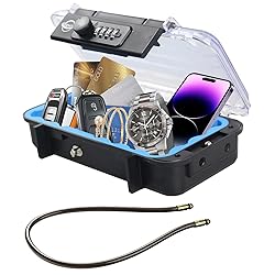 【Shockproof and Waterproof】: Carefully selected high-strength ABS plastic is ingeniously crafted to form the outer shell,while the interior features a thoughtful high-density EVA lining,providing excellent elasticity to effectively reduce friction among internal items and offer all-around protection.With a professional-grade waterproof design,it is seamless,leak-free,ensuring outstanding protection for your valuable items and preventing water intrusion into the case 【Product Purpose】: Uniquely designed with a detachable chain,this portable safe is practical and innovative.It is tailored to meet the secure storage needs of households,travel,and outdoor camping activities.The portable safe is ideal for safeguarding valuables such as smartphones,passports,cash and cards 【High Security】: Utilizing a 4-digit combination lock with a total of 10,000 possible combinations,this safe ensures exceptional security.The initial combination is set at 0-0-0-0,providing a high level of complexity for potential intruders and ensuring optimal protection of your privacy 【Dimensions】: Featuring a refined and compact exterior,the dimensions are 9.44 x 5.03 x 2.28 inches.The internally designed space is reasonable,measuring 7.87 x 3.93 x 1.37 inches,catering to a variety of storage needs 【After-sales Service】: We pledge quality assurance.In case of any quality issues,please feel free to contact Amazon customer service,and we will promptly arrange a replacement for you.To ensure a worry-free shopping experience,we are committed to providing outstanding after-sales support