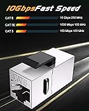 RJ45 Cat6 Keystone Jacks Compatibility: Shielded Female to Female cat6 keystone jack can be used connect two Cat5e/Cat6 Ethernet network cables. Enhance your network with our RJ45 Keystone Jack, functional RJ45 Jack For Cat 6, Cat 5e, Cat 5 cables. Perfect for office and home installations Easy Installation: this cat6 Shielded ethernet coupler featuring a 90-degree Shielded modular ethernet jack insert for a tidy setup, tool-free, plug and play. Support network speeds up to 10 Gbps High Performance: Protective shielded housing reduces EMI/RFI interference. Keystone jack cat 6 with gold plated contact points for superior performance and high-speed data transmission, our Silver rj45 coupler Keystone Jacks support ethernet wall plate/outlet, keystone patch panel,rj45 connectors,ethernet cable extender or surface mount boxes with standard keystone blanks Durable and Secure: Each RJ45 Keystone Jack is built to last, heavy duty construction includes an impact-resistant and fire-retardant housing with gold-plated RJ45 contacts. Enjoy a stable and secure connection in any environment. Space-Saving Design for the 90-degree angled Ethernet jack inserts Cost-effective 20 pack of Category 6 KJ modules can terminate 10 cable runs, great for large environments that require economy and high quality parts.