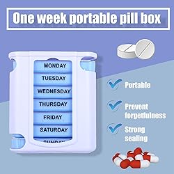 Convenient to Store : This 7-day Weekly organizer features 7 numbered with 4 compartments, you will be able to check to see if you have taken your pills for the day Plan A Week In Advance: Weekly organizer, easy to load and fit. You can grab this weekly box that you need for the week and never worry about forgetting your pills again Lids with Gaskets: To keep daily medicines and supplements freshing, each features a snap-shut lid that securely locks so pills will not spill out With Plastic Storage Box: You can put the container in the small and portable storage box to store 14 boxs , suiatble for the people to carry Plastic Material: To sure the safety of medicines, each organizer is made translucent food grade plastic material with and odorless