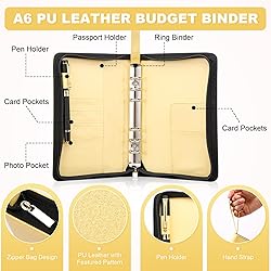 Show Personality: Our A6 PU Leather Zipper Binder features a stylish, professional design in Glitter gold with a sparkling luster and delicate touch. Stand out with its fashionable look and pair it with Toplive budget sheets or planner refills to create a personalized budget binder or planner. Practical Structure: The 6 Ring A6 Budget Binder features a full zipper closure to keep items secure. It includes 2 sleeves for cash/tickets/bills, 5 card holders, 1 pen loop, and a stainless steel 6-ring binder. Ideal for use as a budget binder, planner, wallet, photo binder, or personal organizer Portable & Lightweight: The A6 planner binder (5.7x8.5 inches) holds 100-120 sheets of loose-leaf paper. Its compact size and hand strap make it easy to carry for shopping, school, office, travel, or vacation. Compatible with standard A6 refill paper, it fits easily in your hands, backpack, or suitcase 6 Ring A6 Binder: Simply press and hold the switches on both ends of the binder's frame to open the 6 stainless steel rings. You can easily add budget sheets, refill paper, cash envelopes, or A6 binder pockets. The pen holder ensures you can jot down notes anytime, anywhere Ideal Gift: Toplive A6 Budget Binder, handmade with premium synthetic leather, is a perfect gift for back to school, Christmas, New Year's, Valentine's Day, birthdays, and more. It's ideal for family, friends, lovers, graduates, teachers, professionals and executives etc