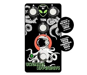 - GUITAR TONE THAT’S OUT OF THIS WORLD. The Octonaut Hyperdrive transparent overdrive delivers expressive dynamic response through detailed engineering and craftmanship. Each Octonaut Hyperdrive features germanium diodes rigorously tested for optimum tone, an IC3 that converts voltages giving the player more headroom, a gain pot that expertly blends the clipping & clean stages, a selectable true/buffered bypass operation, and a refined circuit design for ultra-consistent performance from pedal to pedal. Pair this little guy with any guitar rig and the resultant tone will lead to massive planetary destruction!Here’s what you get with this out-of-this-world pedal:* Internal switch for selecting True Bypass vs. Buffered* Dual-ganged gain pot makes dialing in your tone a breeze* Rare Germanium diodes provide ultimate tone perfection* Refined all-analog circuit design* Provides pure, ultra-consistent performance* Modern IC3 circuitry offering maximum headroom* Made and manufactured in the USAHere's what you get inside:Octonaut Hyperdrive PedalOctonaut Hyperdrive ManualOctonaut Hyperdrive ID CardOctonaut Hyperdrive StickerOctonaut Hyperdrive Medium Guitar PickInterstellar 1" Button