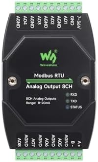 Waveshare Industrial 8-Ch Analog Output Module, 12-Bit DA Conversion, Supports 8-Ch Simultaneous Current Output, DC 7~36V Wide Voltage Power Supply, Modbus RTU Protocol, Rail-Mount Support