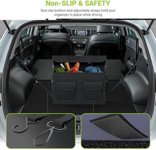 - [NON-SLIP BOTTOM] Non-slip strips on the bottom secures organizer to your trunk and prevents sliding whether the organizer is full or empty. The removable base plate provides the trunk organizer extra support
