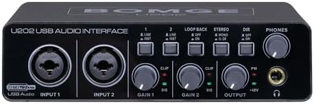 - Plug and Play- Compatible with Recording Software: BOMGE U202 USB audio interface supports Windows and Mac OS, no need to download any driver.Audio Interface is easy to use, simply plug it into your computer's USB port and you're ready to start recording.Compatible with popular recording software such as Avid Pro Tools, Ableton Live, Steinberg Cubase and more.