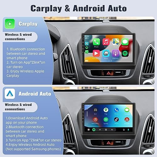 - 【Hyundai Car Radio with Carplay & Android Auto & Mirror Link】 The Hyundai Tucson IX35 carplay with wireless and wired Apple CarPlay and Android Auto and mirror link. After connection, you can access map, GPS navigation, phone contacts, email, notification, music etc. You can also wake up Siri or Google assistant through voice control to get help from them. Have problem in connecting, please find us. Note:note support samsung