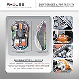 FMOUSE Creative Transparent Wireless Mouse, Dual Bluetooth & 2.4GHz for Multi Device, USB-C Receiver Ideal for MacBook/Laptops, Rechargeable, Silent, Portable, Cool LED, Ergonomic - Grey