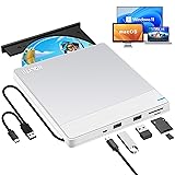 NOLYTH External CD Drive for Mac: USB 3.0 Type-C DVD Burner Player for Laptop Windows PC MacBook Desktop with SD/TF/2 USB Ports Plug & Play(Silver-White)