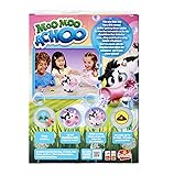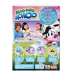 Moo Moo is a little cow with a BIG bubbly sneeze! Real bubbles (and a lot of them!) make this game so exciting for even the youngest players - no reading required to play Gather the most clover cards before Moo Moo sneezes to be the winner Includes 1 Moo Moo the Cow, 15 Cards, 1 Poo Token, 75ml Bubble Solution, and Complete Instructions - requires 3x AAA batteries (not included) Recommended for 2-4 players, ages 4 and up