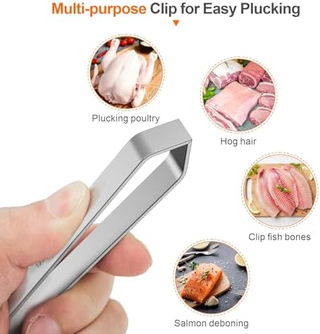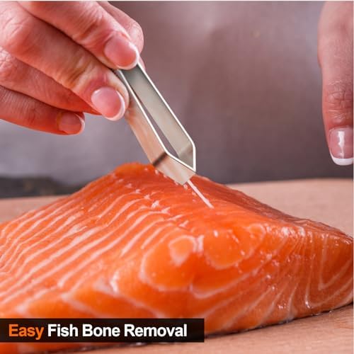 - 【Versatile kitchen tool】Professional fish bone tweezers remove fish bones and scales, Remove fine bones from fish fillets, And fish tweezers also remove fluff from chicken and pork