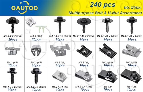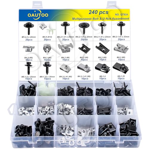 OAUTOO 240pcs Body Multipurpose Bolt & U-Nut Kit Assortment for GM Ford Chrysler