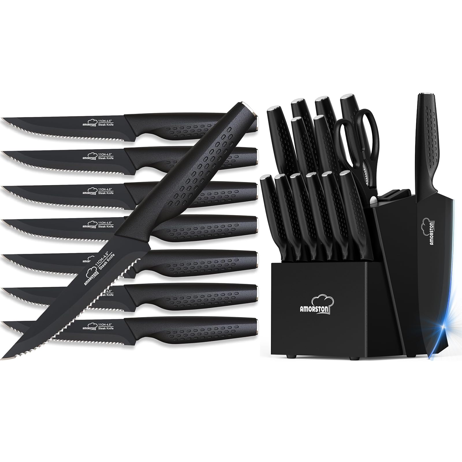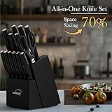 - Knife Set, 15 Pieces Kitchen Knife Set with Block Built in Knives Sharpener, Dishwasher Safe, German Stainless Steel Knife Block Set, Elegant Black