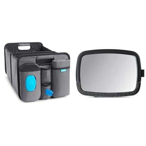 Munchkin® Brica® Out-n-About™ Collapsible Trunk Organizer & Diaper Changing Station & Brica® 360 Pivot Baby in-Sight® Wide Angle Adjustable Car Mirror, Crash Tested and Shatter Resistant, Black