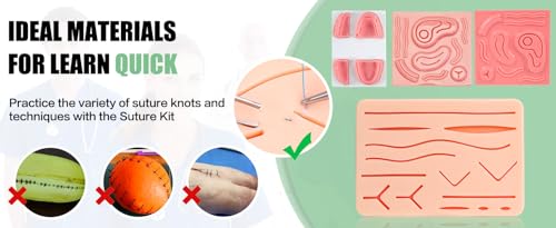 - 【Suture Kit Practice Medical Student】Our suture pad is for demonstration and educational purposes only,And is perfect for medical or veterinary students,nurse practitioner,or physician assistant in training。It saves wear and tear on medical supplies & equipment。Perfect for medical training、anatomy and biology courses、lab experiments、suturing skin、 taxidermy、special effects makeup and prosthetics development etc。Greatly enhances the functionality of your Suture Practice Kit。