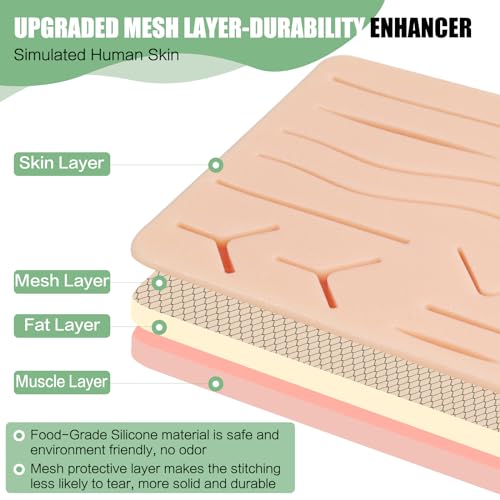 Upgraded Suture Pad (2 pcs) has 3 Layers of Silicone and 14 Wounds,Embedded Rip-Resistant Mesh,Hard to Tear 。Gifts for Medical Students,Suture Pads Perfect The Suture Kit,Suture Practice Pad