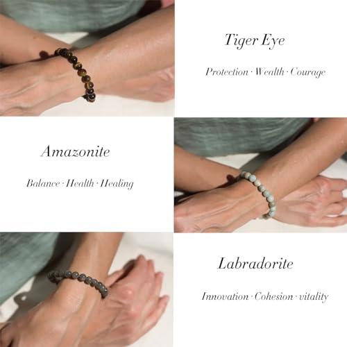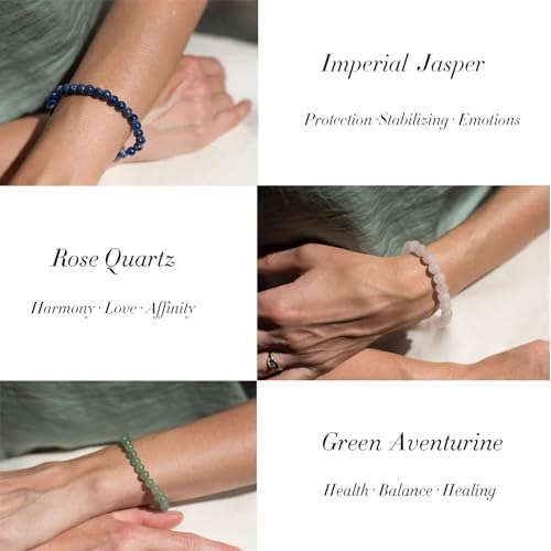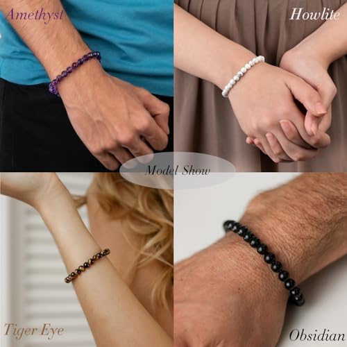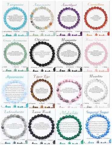 16PCS Natural Crystal Bracelets for Women Men - 8mm Semi-Precious Gemstone Beaded Bracelets, Round Gemstones Stretch Bracelet, Yoga Bracelets Jewelry Gifts