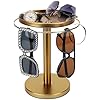 360° Rotating Sunglass Organizer Storage, Stainless Steel Glasses Holder Stand, Glasses Organizer with Tray for Desk, Dresser, Tabletop, Nightstand and Home Decor (Gold)