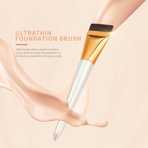 - Premium Ultra-Thin Streight Line Foundation Makeup Brush: Our foundation brush is handcrafted with the finest quality vegan synthetic bristles, made from glossy aluminum ferrule and multi-lacquered wooden handles. Ultra-thin fibers for easy to maintain and cleaning. Non-irritating to the skin. Try it out and use it to apply your liquid foundation, concealer, facial masks and lotion cream cosmetic products
