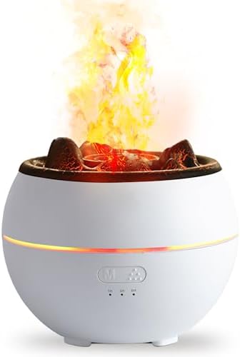 Volcano Aromatherapy Machine, 360ml Aromatherapy Diffuser, 7 Colors of Flame Light and Auto-Off Function, 2 Brightness Modes Humidifier, Suitable for Room, Office and Gym, White