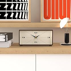 - A mid-century modern mantel clock with an emphasis on the modern. This space age design combines a contemporary cream dial and brown silicone case with a retro-inspired dial and simplified numbers. Silicone coated acrylic case, metal hands and glass lens. Precise and reliable quartz silent sweeping movement without ticking noise. If your hearing is particularly sensitive in a completely silent room, you may hear a very silent whirl. NEWGATE Thunderbird Silent Mantel Clock - No Tick Noise - Mid Century Modern Mantel Clock - Living Room Clock - Desk Clock - Desk Clock - Design Clock Newgate clocks are proudly designed in the UK. Mid-century modern mantel clock with an emphasis on modern. Silicone coated acrylic case, metal hands and glass lens. Requires 1 x AA alkaline battery. Precise and reliable quartz silent sweeping movement without ticking noise. If your hearing is particularly sensitive in a completely silent room, you may hear a very weak whirl. Measurements: HWD 13.5 x 28 x 7.5 cm.
