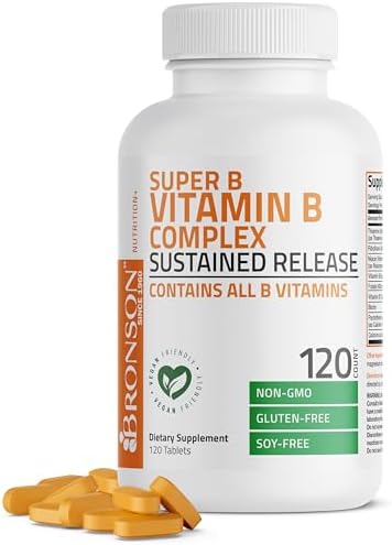 Bronson Super B Complejo de Vitaminas B de Liberación Lenta (Vitamina B1, B2, B3, B6, B9 - Ácido Fólico, B12) Contiene Todas las Vitaminas B 120 Tabletas