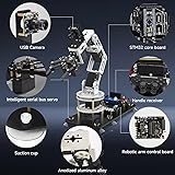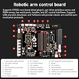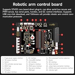 Desktop robot arm controlled by a virtual machine: Dofbot-SE robot arm uses a virtual machine as the main controller and does not rely on the expensive RaspberryPi jetson nano. It also implements complex grasping tasks such as custom model training, garbage classification, and gesture recognition. take action (VM Software Not Support MAC) Yahboom only provide Windows version. 6DOF intelligent serial bus servo robot arm: The robot body of the robot arm contains 6 bus servos that support readback of position and status information. The servo has built-in metal gears, high-precision potentiometers, anti-reverse connection interfaces, and can be cascaded. control. As a key accessory of the robotic arm, the powerful servo system can ensure accurate movement of the robotic arm and increase its service life, allowing it to easily grab objects weighing 200g-500g. Diversity of control methods: The robot kit can be controlled through the standard wireless handle, mobile APP and computer mouse in the kit. Multiple operation methods can be used for various projects and learning, bringing more creative possibilities and fun. Creative function development: the camera and the robotic arm are combined into one. The camera is responsible for AI recognition work, and the robotic arm is responsible for command output operations. It realizes inverse kinematics algorithm by controlling each joint, color recognition, tracking and grabbing, gestures and faces. Recognition tracking, MediaPipe machine learning, action group copying, chess playing, garbage classification and a series of complex actions High-quality structure and high-quality after-sales service team: The robotic arm uses high-quality aluminum alloy and industrial-grade bearings, which can be used and learned endlessly. Yahboom develops Python source code for Dofbot SE, with 151 courses, from basic to advanced learning, and technical support to protect you. Complete package, no need to prepare expensive development board master