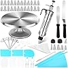 Nuogo 154 Pcs Aluminum Cake Decorating Tools Kit with 12 Inch Aluminum Cake Turntable, Cake Decorating Gun with 6 Heads, 34 Pcs Cake Decorating Set, 11 Cream Spatula Set, 100 Cream Piping Bag