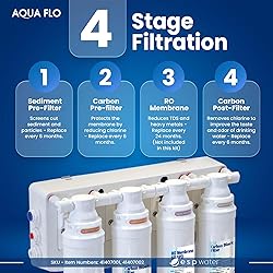 Filter Kit: This replacement kit includes 1 Sediment Filter, 1 Carbon Prefilter, and 1 Carbon Block Post Filter, designed to maintain the efficiency of your water filtration system. RO Membrane sold separately Improved Taste: Removes undesirable tastes and odors, providing your household with fresh, high-quality water perfect for drinking, cooking, and food preparation Easy Installation: The Quick Change (QC) filters make the replacement process simple, allowing you to replace your filters without hassle and keep your Aqua Flow system running smoothly Cost Efficiency: An affordable alternative to bottled water, this filter kit saves you money while reducing plastic waste, offering a cost-effective way to enjoy purified water Made from Quality Materials: The aqua flo platinum qcro ro filter replacement kit is manufactured to meet high-quality standards, this kit ensures pure and pristine drinking water, with filtration at pennies per gallon, improving taste and reducing chlorine and odors