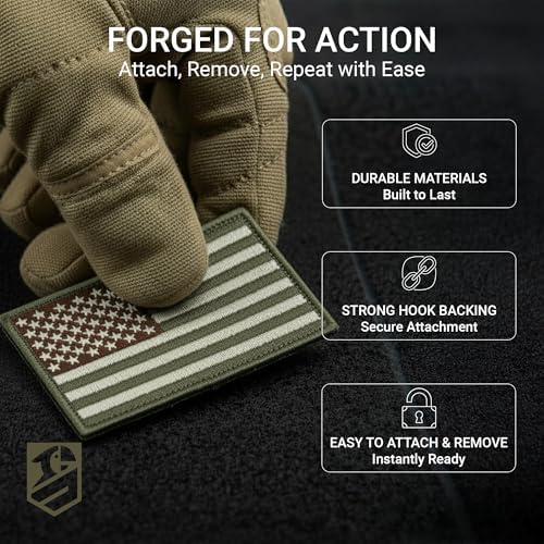 - Heavy-duty design marks this OD American flag military patch set, made from premium materials for lasting durability; ideal as a flag patch for a tactical backpack, military jacket, or army gear, it embodies resilience and patriotic pride