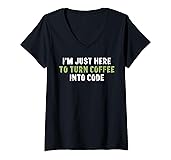 Womens I'm Just Here To Turn Coffee Into Code Coder Programmer V-Neck T-Shirt