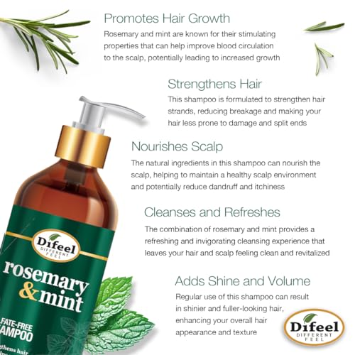 - ROSEMARY SHAMPOO: Our Difeel Rosemary & Mint Shampoo is infused with nourishing Biotin. Biotin plays an important role in the health of your hair, skin, and nails. A lack of Biotin can lead to hair loss.