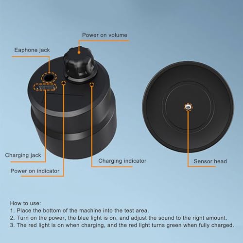 - APPLICATIONS : 3.5 mm headphone jack can be connected to display spectrum, voice recorder, transmitter, devices, etc. (not included), also can be plugged into the dual channel line for direct recording, can detect abnormal noises from heating ducts, fire ducts, water pipes, underfloor heating ducts, automobile, home plumbing, and more.