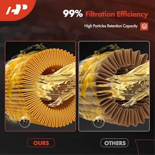 - [Enhanced Performance-99% filtration efficiency]: A-Premium Oil Filter with 99% filtration efficiency and effectively intercept particles and impurities that may damage the engine, extending engine life and maintenance intervals.