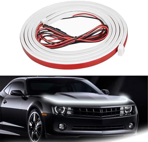 Jewkot 1 PC Car Hood LED Light Bar, 70" Start Scanning Light Daytime Running Light, Flexible Waterproof Hood Gap Light Guide Strips, Universal for Most Cars Trucks Safety Warning Light (White)