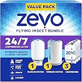 Fits 2x More Bugs - The Zevo MAX bug catcher can fit two times more flying insects than the Zevo Plug-In. The indoor insect trap can attract gnats, fruit flies and house flies. Built for At-Home Use - These bug traps were designed with your convenience in mind. Each fly trap and gnat catcher is made without insecticides for seamless ongoing use. Catch Flying Insects 24/7 - This flying insect trap uses blue and UV light to continuously lure insects into the adhesive refills. Insects are then trapped on a disposable adhesive backing that you never have to touch. Discreetly Use In Any Room - With a five-foot cord, you can use this indoor fly trap anywhere flying insects gather inside your home. You can easily place a bug trap in your kitchen, bathroom, garage, near plants or in multiple living spaces. Includes 2 Plug-In Bases & 3 Cartridges - This kit includes two indoor bug trap bases and three refill cartridges. Stock up on refills to ensure you always have one on hand, or bring home a value pack with multiple bases so you can keep a gnat trap or fruit fly catcher in every room.
