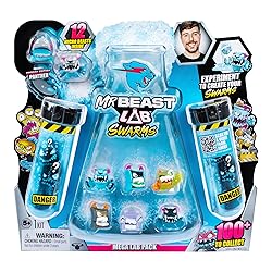 Crea tus MrBeast Lab Swarms. Prepárate para el experimento ULTIMATE mientras los niños crean 4 de los 12 personajes inspirados en MrBeast caóticos. Los coleccionistas agregarán agua al tubo de ensayo, lo agitarán vigorosamente y presenciarán cómo los Swarms emergen de un grupo de burbujas. Cada paquete incluye 12 micro bestias Swarm incluyendo el garantizado Special Edition Hard Head Panther. Con más de 100 personajes únicos de 1 pulgada (2.5cm) MrBeast Lab Swarms para coleccionar, incluyendo el raro y codiciado Hyperchrome Panther, la descubrimiento te espera. Pero date prisa, solo hay 1000 Hyperchrome Panthers disponibles. Cada Swarm pertenece a un equipo distinto, como Home Horrors y Techno Terrors. ¿Qué equipo capturará el corazón de tu coleccionista y cuál completará primero? Abrace el caos, mezcle, agite, cree y embarque en un emocionante viaje experimental con los nuevos MrBeast Lab Swarms.