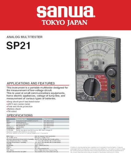 Japan Sanwa SP21 Analog Multitesters, Multi-Function/Multi-Range Pointer multimeter Zero Center Instrument Off beep Battery Check(SP21)