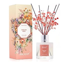 Airkeep Reed Diffuser Set,3.38 fl oz (100 ml) - English Rose Oil Diffusers with 8 Reed Sticks, Home Fragrance Reed Diffuser for Bathroom Shelf Decor