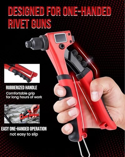 - Reinforced with Strength and Endurance: Crafted from premium aluminum alloy, this rivet gun boasts exceptional durability, ensuring a long-lasting product life that withstands the rigors of daily use. Its ergonomic design incorporates non-slip PVC glove handles, not only enhancing operator comfort but also providing a secure grip that prevents slippage, thereby facilitating efficient and swift fastening tasks. This combination of materials and features guarantees strong stability during operation, ensuring that the rivets are securely fastened and less prone to loosening over time.