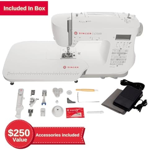 SINGER C7220 Computerized Sewing Machine with Extension Table & Accessory Kit | 200 Built-in Stitches, 8 One-step Buttonhole Styles, Alphabet Font, Speed Control Lever & LCD Screen