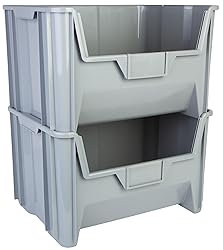 - Hudson Exchange giant stacking hopper container bins provide storage and easy access to large parts, tools, and other warehouse items. Injection molded from high density polyethylene (HDPE), the bins are easy to clean and rust-resistant.