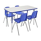 FDP Rectangle Activity School and Office Table (24 x 48 inch), Standard Legs with Swivel Glides, Adjustable Height 19-30 inches; Quick Ship Single Box - Gray Top and Blue Edge