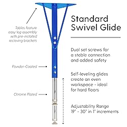 MULTI-PURPOSE ACTIVITY TABLE: 24" x 48" rectangle table with adjustable legs provides a durable, versatile space to work and play in classrooms, daycares, homes, churches and more QUICK AND COMPACT: table top and legs ship together in a single box for your convenience and to reduce carbon footprint T-MOLDING EDGE: sturdy plastic edge banding around stain-resistant laminate table top helps protect from everyday wear and tear ADJUSTABLE HEIGHT: standard table legs adjust in 1" increments for table top heights from 19" to 30" to accommodate children, teens, and adults STABLE LEG DESIGN: slightly angled legs for reinforced stability feature self-leveling nylon swivel glides that adjust to uneven surfaces SAFE FOR YOUR SPACE: GREENGUARD Gold Certified for limited emissions into indoor air and meets BIFMA standards for safety and durability LIGHT ASSEMBLY: includes pre-installed leg receiving brackets for convenient assembly; adult assembly required; single box shipment