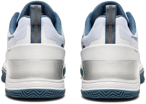 Diadora Men`s Blushield Torneo 2 Clay Tennis Shoes incorporate many familiar technologies from the extraordinarily comfortable, durable, and stable Speed Blushield line. The result is a brand-new shoe designed to take your performance to the next level while maintaining the classic characteristics you know and love from prior models. Upper: Supreltech + Air Mesh + D-Skin combine for an excellent blend of stability, breathability, and comfort. An outer hook further enhances stability. Midsole: Blushield technology offers premier cushioning and rebound. Light EVA improves comfort and performance at a reduced weight. Arch reinforcement maximizes stability. CCB technology features a medial stabilizer to control torsional stability near the arch and does not detract from the shoe`s shock absorption capabilities. Outsole: The full-length Duratech 5000 wear-resistant rubber compound enhances durability. This model comes with an outsole optimized for performance on CLAY court surfaces. Color: White and Oceanview