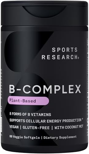 Sports Research® Vitamin B-Complex - Full Spectrum of B Vitamins with Methylated B12 & Folate - Gluten Free · Plant-Based · Non-GMO · Vegan-Friendly Formula - 60 Veggie Softgels