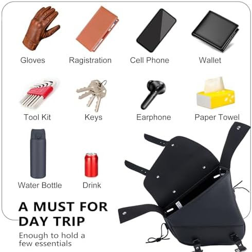 - [Easy to Install] - Includes three adjustable faux leather mounting straps with buckles for simple, secure installation to the motorcycle. Slots are pre-cut in the back of the bag for installation using faux leather straps.