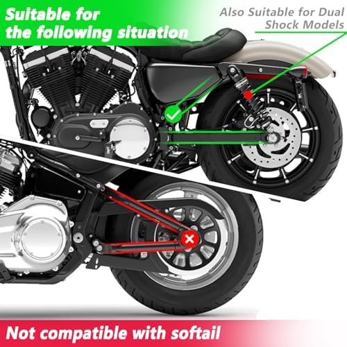 - [Fitment] - Compatible with motorcycles with dual shocks like the Harley-Davidson Sportster and Yamaha Bolt or custom hard tail motorcycles. Fit for Sportster 48 Iron 883 1200 Custom Street 750 Night Rod Special, Forty-Eight, Rebel 300 500 (Not for shadow and XL1200C).