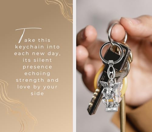 Discover the distinguished collection of Saint Michael keychain for men and women, where timeless spirituality meets meticulous craftsmanship. Embrace the strength and protection it embodies, a symbol of heavenly intervention tailored for the discerning individual. Crafted with precision and care, this Archangel Michael keychain goes beyond mere adornments, it becomes a personal guardian in the journey of life. Its intricate design reflects the power and grace associated with this revered archangel, making it a unique and meaningful addition to any ensemble. Included in this collection is the Saint Michael prayer card, a cherished companion for moments of reflection and spiritual bond. Carry the words of the prayer, invoking the guidance and might of Saint Michael, creating a bridge between the earthly and the celestial. Together with the St Michael protect us keychain, they both become emblematic guardians, uniting style and fortitude, providing a tangible shield and constant memento of unwavering belief. The presence of Archangel Michael prayer keychain serves as a tactile reminder of the transformative power of prayer, encouraging moments of introspection and connection to the divine. Each piece in this set is meticulously crafted, marrying elegance with sacred symbolism. Whether for personal indulgence or as a thoughtful gift for a loved one, the Saint Michael key ring collection transcends mere materiality, embodying the timeless essence of holy defense and unwavering hope. Saint Michael Keychain Size: 3.5" (89mm), Prayer to Saint Michael Prayer Card Size: 2.5" x 4.5" (64mm x 114mm).
